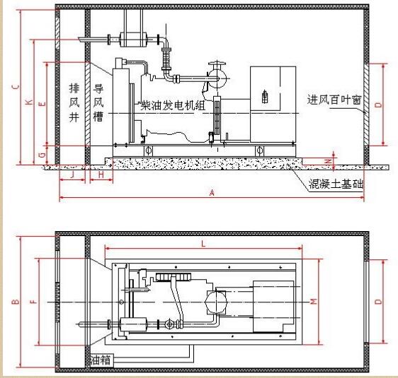 海南上柴柴油发电机组机房安装布置图方案