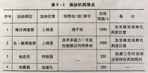 表5-2康明斯发电机组的保养周期表